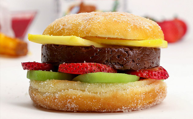- Как насчет еще одного сладкого бургера? Берем сладкий присыпанный сахарной пудрой пончик, разрезаем вдоль и начиняем всевозможными фруктами с «Нутеллой». Главное, не показывать свой кулинарный шедевр детям.