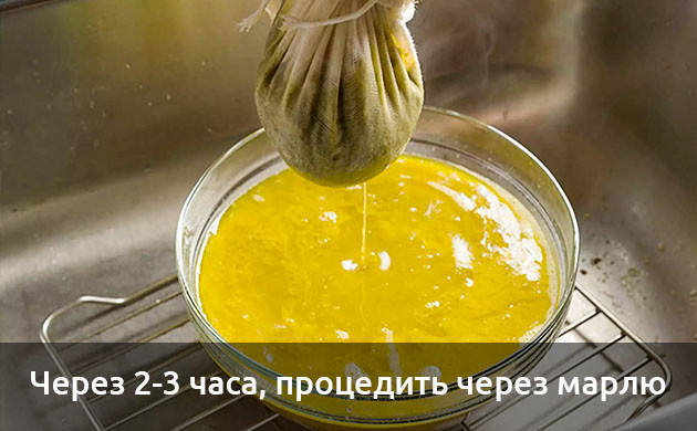 По прошествии 2-3 часов почти вся вода испарится, и масло будет готово. Его следует процедить через марлю, сложенную в несколько слоев, и перелить в емкость, где оно будет храниться. Марлю в конце можно отжать руками, чтобы полностью извлечь из нее остатки драгоценного масла.