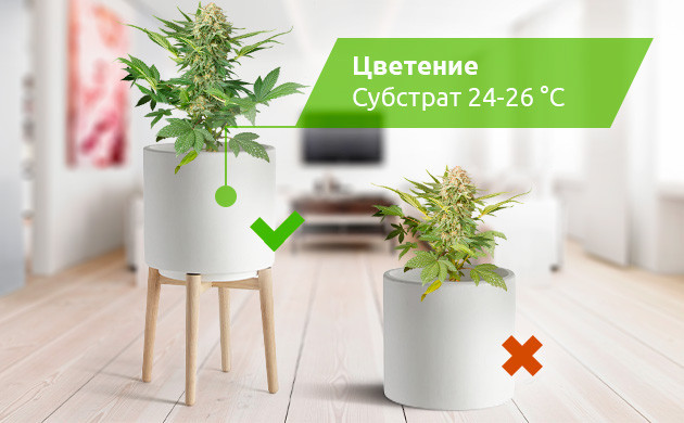 Если вы живете в регионе с холодным климатом и знаете, что сбор урожая придется на осень, а помещение с растениями не отапливается, то позаботиться о здоровье каннабиса лучше заранее. Для этого еще на этапе подготовки субстрата добавьте в него побольше перлита или вермикулита. Эти компоненты не только обеспечивают хорошую аэрацию и удержание влаги в толще грунта, но и обладают низкой теплопроводностью. Правильный состав субстрата поможет сохранить комфортную температуру в глубине горшка даже во время ночных похолоданий.