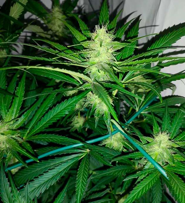 Наконец-то пошел заметный рост бутонов. Кусты активно набирают массу, при этом высота уже около 85 см. Из-за жары и тесноты снова проявился легкий стресс, поэтому снова вернул самодельную ScrOG-сетку из резинок, чтобы распределить кроны и улучшить вентиляцию. Как же уже хочется быстрее дождаться харва. Понял, что терпением я не блещу.