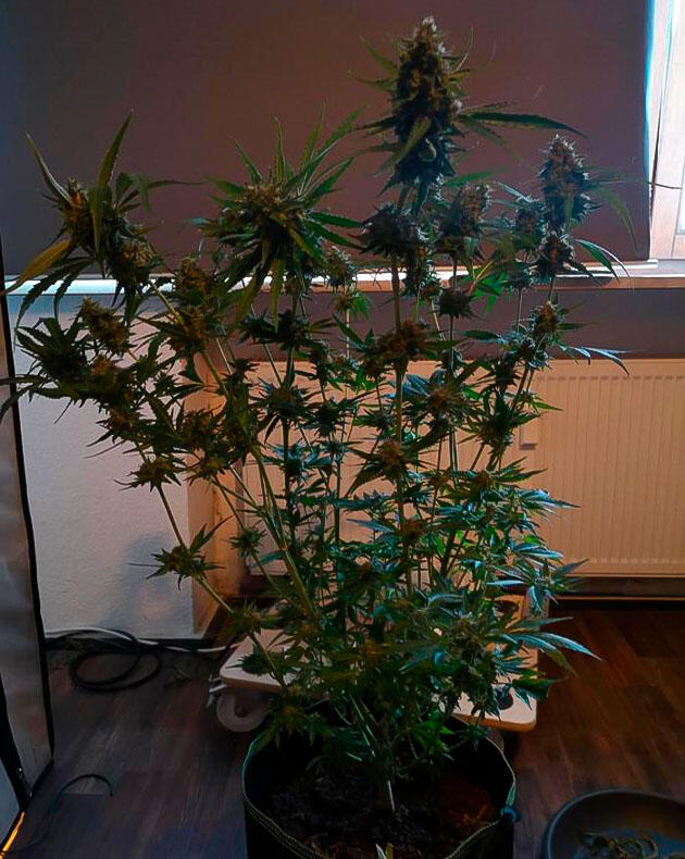 По итогу я могу с уверенностью сказать, что это был классный опыт. Конечно, не все шло гладко, но я сам своими силами прошел путь до настоящего, хоть и очень скромного, урожая и теперь не планирую останавливаться на достигнутом. Из двух растений полноценно дожил до харвеста только второй куст. Пространства в боксе катастрофически не хватало, особенно с учетом фильтра, вентиляции и лампы. Пришлось буквально изобретать способы, чтобы растения не касались света, а температура не поднималась выше критического уровня. Первая малыха в итоге не выдержала жары. При дневных 40 °C и влажности около 30 % листья начали сгорать, а часть трихом просто испарилась. Я поздно купил термометр-гигрометр и просто не понимал, что так тормозит растения.