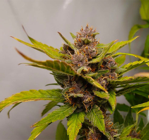 По генетике Purple Juice Auto я выделил для себя два основных момента. Первый – куст очень сильно вытянулся, чего быть не должно. С одной стороны, я получил длинные ветви с большим количеством соцветий, с другой – макушки уперлись в светильник и от этого пострадали. Второй момент – фиолетовый цвет, который соответствует названию и описанию, а значит, генетика стабильная и хорошо проверенная.