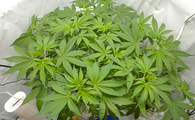Кустик активно растет. Крона стала заметно гуще, новые стебли быстро сформировались, вытянулись и заняли свое место под солнцем. От горшка до макушек – 52 сантиметра. Условия в палатке стали лучше, температура опустилась до 28 °C, температура раствора такая же. Влажность – 65 %. Расстояние до ламп около 90 сантиметров. В палатке появился запах, не резкий, но весьма ощутимый. Раствор не менял, не добавлял, его показатели с датчиков остаются такими же: ppm 650, pH 5,8.