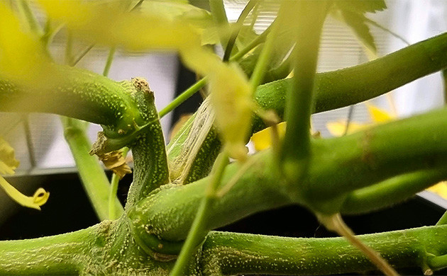 Взвесив все за и против, я вооружился ножничками и крепкой рукой топнул макушку. И, забегая вперед, скажу, что не прогадал. Уже через пару дней на месте среза красовались две новые макухи, а сам кустик вообще не замедлил свой рост. Всё прошло даже лучше, чем я ожидал. Полив снова два раза: сразу после топпинга и в конце недели. Условия без изменений, влажность на уровне 60 %, температура 26 градусов.