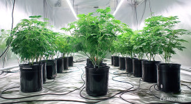 Сейчас все шесть растений пьют по литру (минимум) в день. Цветение уже близко. Пришлось немного приподнять два самых низких кустика, они до сих пор отстают на 10 см от остальных четырех. В ближайшее время поставлю приточный вентилятор, потому что без нормальной циркуляции воздуха сложно понизить влажность.