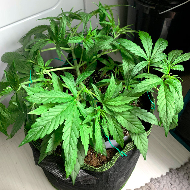 Семка была высажена в тканевый горшок объёмом 19 литров. Я не использовал промежуточный контейнер меньшего объёма, чтобы не пересаживать растиху. Возможно, лучше начинать с небольшого стаканчика, но мой опыт подсказывает, что это лишняя трата времени, а иногда и стресс для саженца. В моём гроутенте были следующие условия: