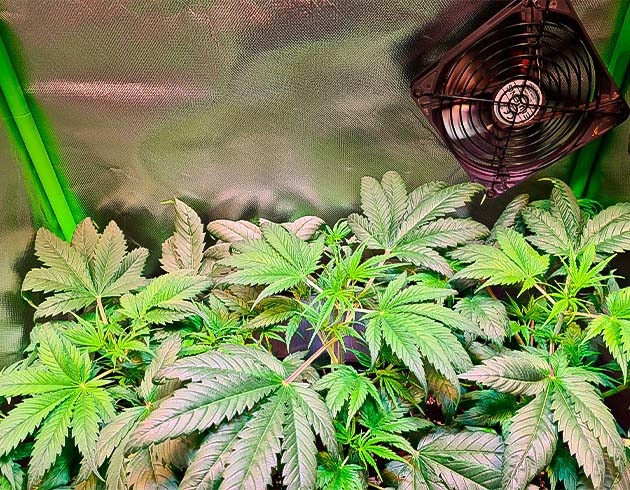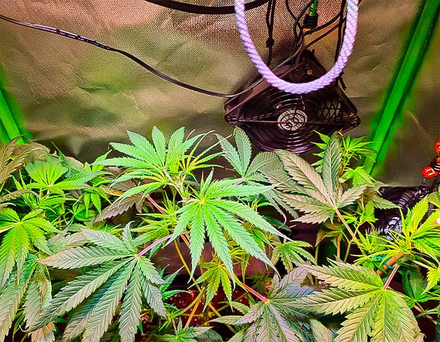Цветение началось и идет хорошо. Листвы становится все больше, а соцветия постепенно формируются. На седьмой неделе пришлось прибегнуть к дефолиации и LST-подгибу. Растишки отлично перенесли тренировки, никаких признаков стресса я не наблюдаю. По высоте они уже вытянулись до 58 сантиметров.