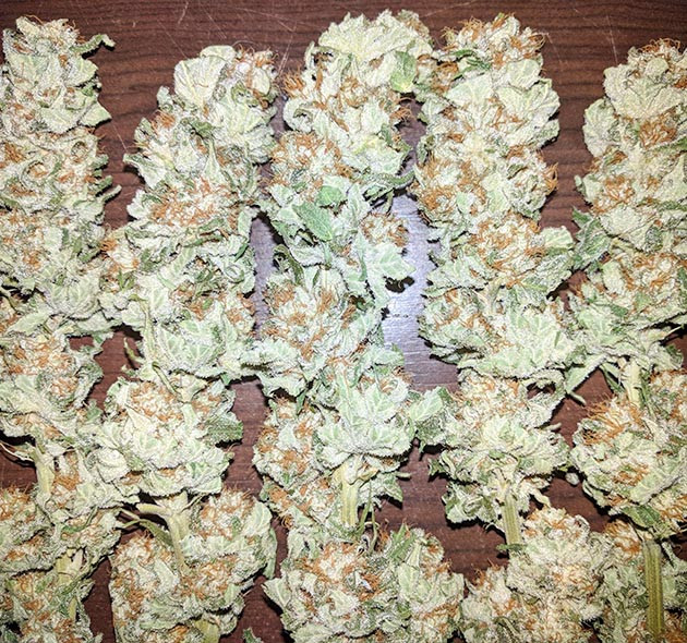 Последняя девочка выросла просто роскошной. Соцветия на ней покрывали ветви практически полностью, не оставляя места между узлами. Плотные, красивые и чертовски ароматные. Эта девочка порадовала меня особенно. К середине 14-й недели все пять кустов были срублены, и настала пора просушки. Для этого у меня есть отдельная комната, где последнюю девочку уже ждали проманикюренные колы с остальных кустов.