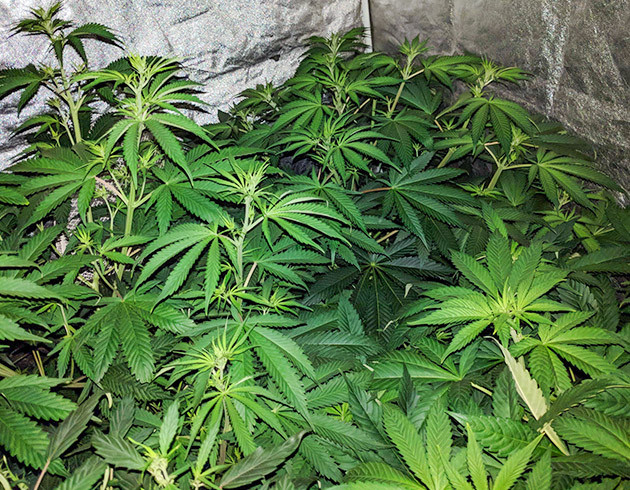 А вот на десятой неделе запах усилился в разы, так как соцветия заметно увеличились в размере. На них появились белые волоски, но трихом еще не было. Никаких проблем с кустиками не возникает. Нет ни насекомых, ни признаков дефицита/переизбытка питательных веществ. Всё идет хорошо. Однако в следующий раз я буду переводить их в цвет после пяти недель веги, чтобы они были ниже: кусты по 150-180 сантиметров – это слишком для индора даже в большом гроубоксе.
