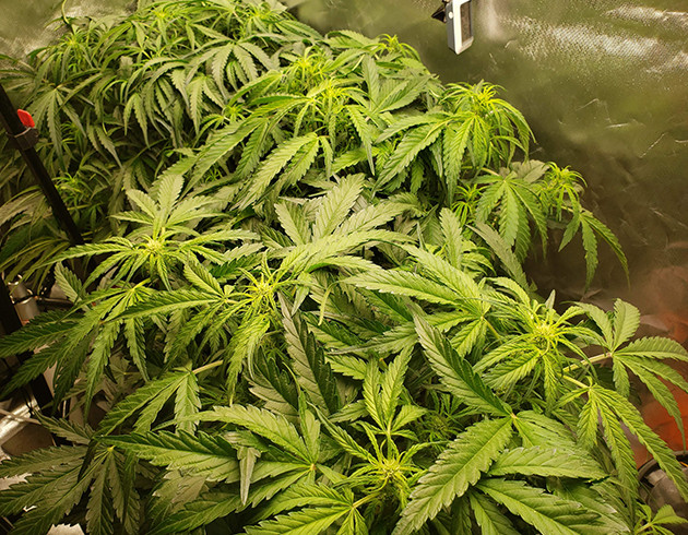 С шестой недели начал вести отсчет цветения. С этого момента кустики получают удобрения на цвет, то есть CaliMagic и Maxi Bloom, ppm “компота” составляет 750. К концу недели растишки заполнили почти всё пространство палатки. К той, что стоит у задней стенки, пробраться практически нереально.