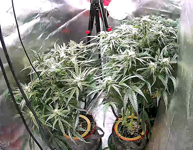Третья неделя, и девочки чувствуют себя просто превосходно. Они переехали в горшки по 20 литров, и я сделал LST. Все идет отлично, никаких проблем. Горшки подключены к автополиву, все также получают по три порции “компота” в сутки. На этой неделе довел ppm до 600 и немного снизил влажность, до 60 %. Забыл упомянуть, что в боксе стоят автоматический увлажнитель и вентилятор для обдува. А также установлена камера, которая постоянно снимает кустики. Вообще, весь бокс у меня автоматизирован, и я могу контролировать всё дистанционно. Что касается полива, то кусты получают примерно по 1,5 литра в сутки.