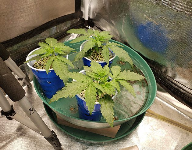 Уже в стаканчиках растишки начали получать немного удобрений, так как я использую кокос с перлитом для грова. 0,01 мл/л CaliMagic и 0,08 мл/л MaxiGro три раза в день. Кто-то скажет, что это чересчур, а я так уже делал и убедился, что это отличный вариант для кокоса. Саженцы очень бодрые и быстро тянутся, формируя новые листья и ярусы. К концу первой недели уже начали наращивать третий этаж! Условия в палатке поддерживаю стабильные: