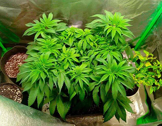 бокс – на время вегетации палатка 40 х 40 х 120 см, а на время цветения 90 х 50 х 200 см;