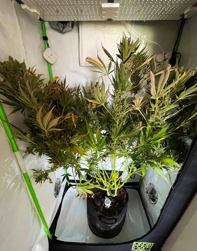 В середине 12-й недели я получил тент побольше, так как тот, в котором стояла вторая девочка, был слишком маленький. Теперь ей предстоял еще один переезд. Сначала перенёс всё оборудование, затем аккуратно снял сетку и переставил горшок с растением в новый тент. Обошлось без происшествий. Обе девочки начали полноценно цвести, набирая массу бутонов.