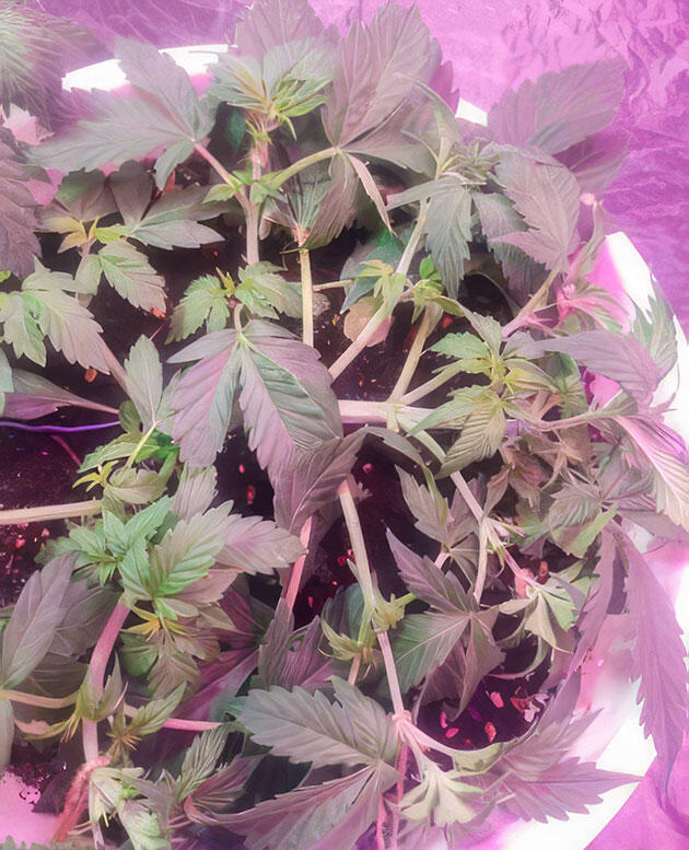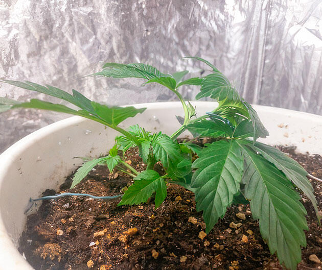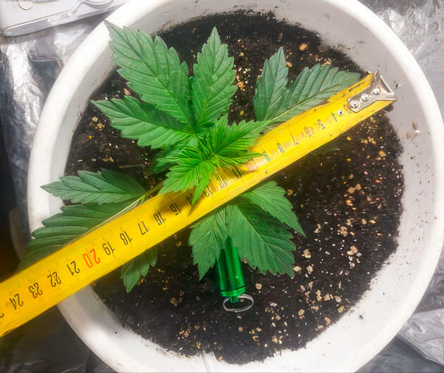 Мне пришлось на несколько дней отъехать по делам. Оставил своего монстрика под присмотром надежного друга. Все расписал, и никто не подвел, ни друг, ни куст. Отлично развивается, мне кажется, что ему будет тесно в выбранном горшке. Размах «крыльев» уже 24 см, а ведь это только 15-й день цикла, начало 3-й недели. Меня все еще нет дома, но мы часто видимся по видеосвязи. Кстати, на 16-й день цикла товарищ, почитав различные статьи и вдохновившись моим кустиком, решил, что надо гнуть. И – о чудо! – сделал это хоть и по видеосвязи со мной, но чертовски зачетно.