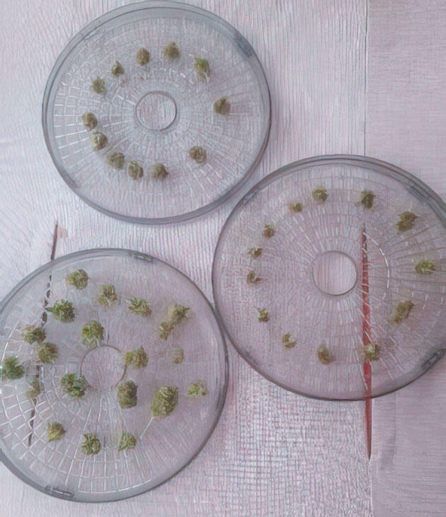 Планирую харвить в три этапа, начиная с 73-го дня цикла, считая от каски. Сперва «попкорн», сухой вес которого в итоге составил 8 граммов. Затем срез слабых веток с результатом в 32 сухих грамма. И финал на 77-й день – это срез основных шишек, мокрый вес которых с веточками составил 300 грамм. В сухом виде после обрезки общий вес составил 84 грамма, что в 4 раза больше, чем я ожидал с оглядкой на все то, что пережил куст из-за моих экспериментов и ошибок.