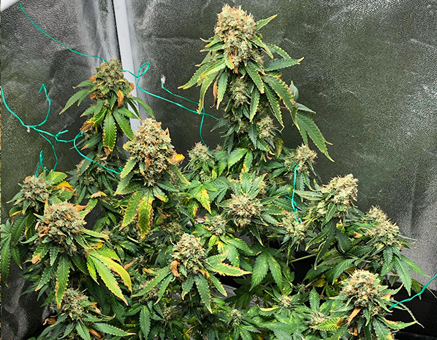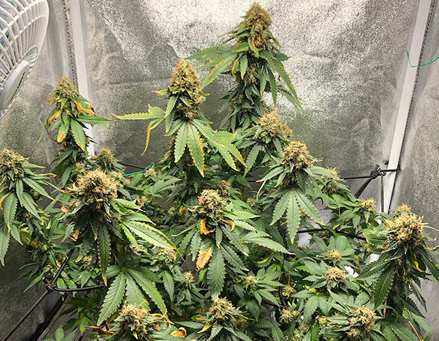 Я остался доволен White Widow от “Семяныча”, но был разочарован самим собой. Уверен, если бы я предпринял меры, когда только обнаружил признаки вируса табачной мозаики, куст бы получился еще лучше. Также подозреваю, что я немного переборщил с добавками, и к вирусу добавился переизбыток азота. С другой стороны, так я убедился, что у “Белой Вдовы” очень крепкий иммунитет, и, даже несмотря на такие проблемы, она выросла в роскошный куст. Внешний вид растения получился очень специфическим за счет пожелтевшей скрученной листвы, оранжевых и белых стигм, большого количества трихом. Соцветия выросли достаточно большими, хотя набралось и немало “попкорна”. Сушка заняла 10 дней для самых больших кол, от 5 до 7 дней для веток с соцветиями поменьше. Итоговый результат – 90 грамм сухих соцветий. Вес мокрого урожая составлял 470 грамм.