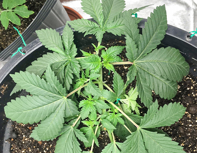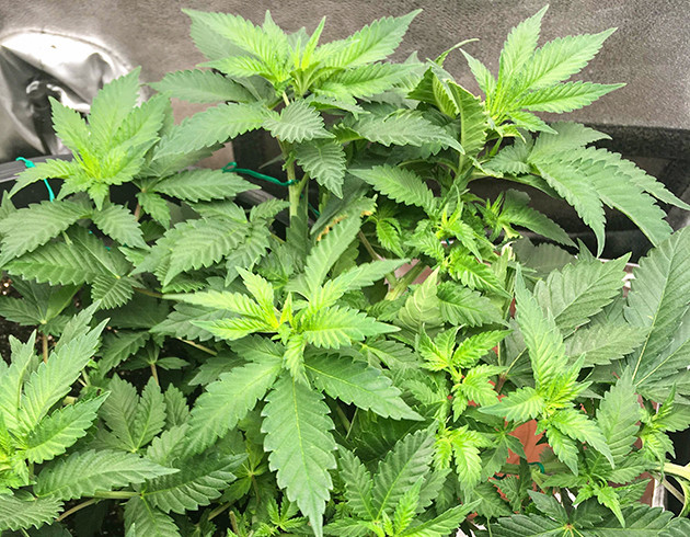 На четвертой неделе растение переехало в горшок на 14 литров. Высадил ближе к краю горшка для удобства тренировок. Через пару дней начал аккуратно гнуть кустик в разные стороны, а еще через пару дней сделал топпинг. После этого растение получило свою прежнюю дозу удобрений, но с большим количеством воды. В почве много азота за счет добавок, из-за этого Bio-Grow будет усваиваться немного дольше. Пока развитием кустика полностью доволен.