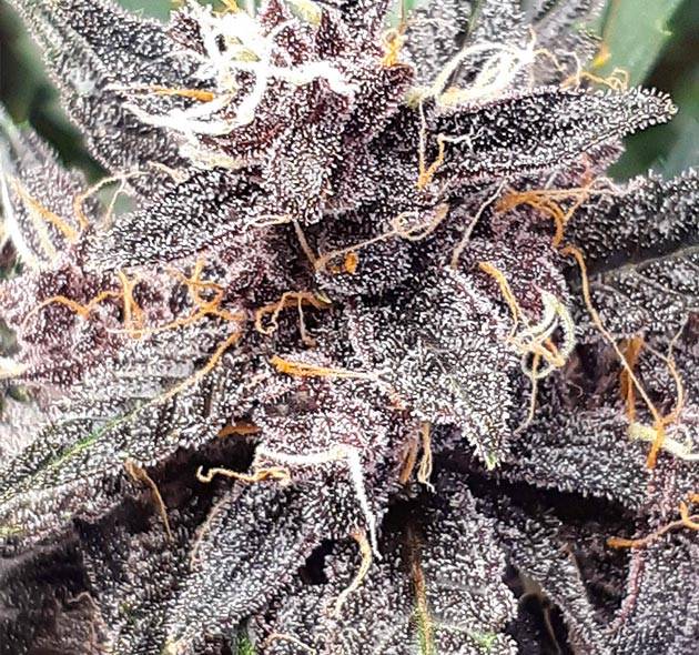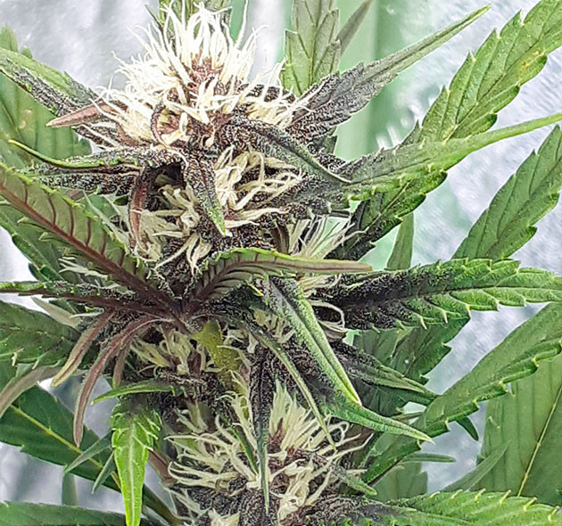 К шестой неделе растения подошли в превосходном состоянии. Честно говоря, выглядели они так, будто уже полностью созрели. Шишки налились смолой, волоски начали становиться огненно-рыжими. К концу недели цвет бутонов был тёмно-фиолетовый, почти черный. Удивительная красота, фотографии не передают, насколько насыщенный у них цвет. В конце недели перестал давать удобрения и начал кусты промывать. С этого момента раз в неделю они будут получать в два раза больше обычного полива.