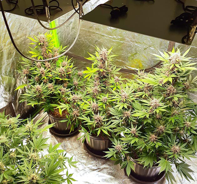 На третьей неделе кустики утроили свой размер и покрылись большим количеством листвы. На верхнем этаже начали проступать фиолетовые оттенки. С середины недели начал аккуратно гнуть ветви по методике LST. Кустики быстро отозвались на тренировку, и на них начали появляться новые веточки. К концу недели появились стигмы, а значит, LSD Auto прошла вегу за 20 дней.