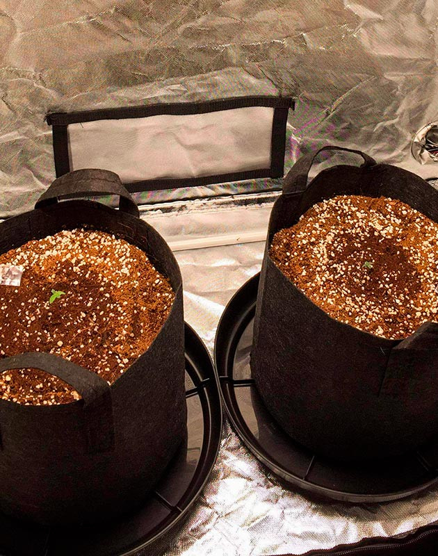 Культивацию я буду проводить в гроутенте. После прорастания семечко будет посажено в тканевый горшок на 30 литров, наполненный землей. Световой режим будет круглосуточный, влажность воздуха я постараюсь поддерживать в диапазоне между 55 и 65 %, а температуру в районе 23 - 25 °С.