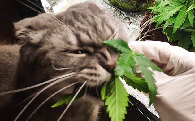 На четвертой неделе растишка, которая была искусана котом, продемонстрировала крепкий дух и волю к жизни. Она стала вытягиваться и набирать массу стремительней, чем ее здоровая сестричка. Удалил наиболее поврежденный лист и отдал его на съедение шерстяному. Кот от такого лакомства отказываться не стал. Концентрацию компота постепенно повышаю, готовя кусты к предцвету, ppm раствора 650. Девочки выглядят здоровыми и крепкими, никаких признаков дефицита или переизбытка, как и других проблем.
