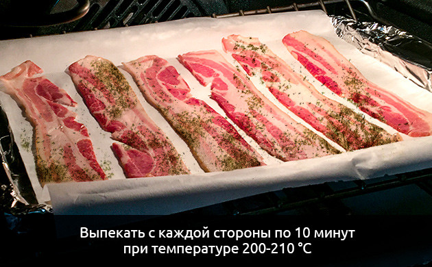 Ингредиенты для канна-бекона остаются прежними: сами мясные слайсы и небольшое количество декарбоксилированной марихуаны. Только на этот раз выкладывать бекон нужно на застеленный пергаментом противень и выпекать на протяжении 10 минут с каждой стороны, также посыпав каждую сторону измельченным каннабисом. Температура в духовке должна быть 200-210 градусов, а помещать слайсы лучше сначала в холодную духовку, а затем уже включать разогрев, чтобы кусочки прожаривались равномерно.