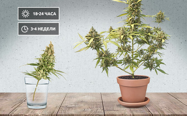 Лучше всего использовать черенки, срезанные примерно на 2–3-й неделе после перехода растения в фазу цветения. Далее потребуется около недели, чтобы они укоренились. Повторная вегетация ваших клонов займет как минимум еще 2–3 недели. В целом данный процесс добавит не менее 3-х недель к общей длительности цикла (без учета дальнейших тренировок). Каждый дополнительный “сеанс” топпинга добавит еще примерно неделю.