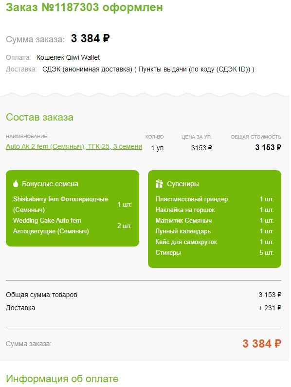 Письма, приходящие после оформления заказа в магазине “Семяныч”, всегда приходят с адреса [email protected] и выполнены в следующем дизайне: