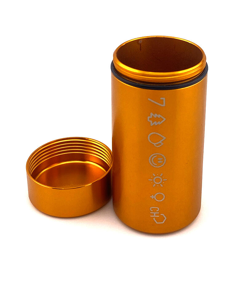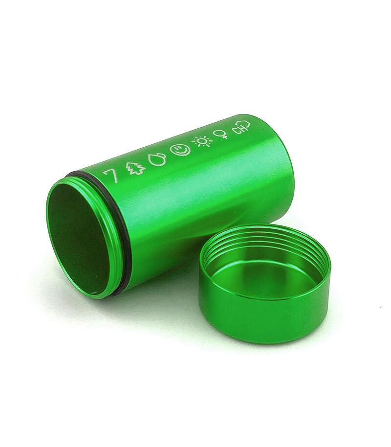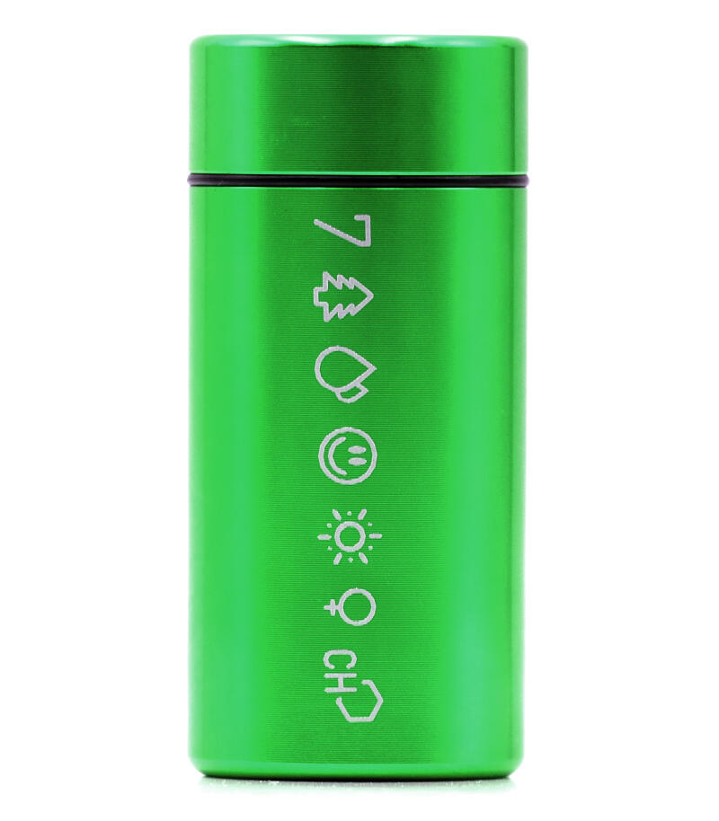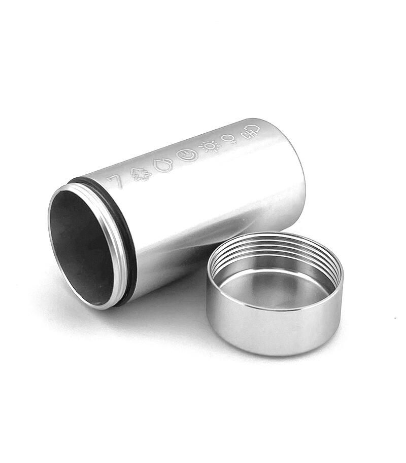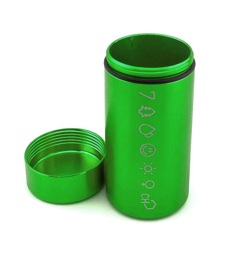 У каждого из нас возникала необходимость взять с собой небольшое количество шишек. И если они действительно качественные, то аромат становится серьезной проблемой. Да и носить с собой бумажный сверток или пластиковый пакетик как-то неэстетично. Контейнер металлический 7CH малый вмещает в себя достаточное количество растительного материала, чтобы вам были рады на любой вечеринке. Он выполнен из авиационного алюминия, за счет чего прочный, но лёгкий, а также полностью герметичный, не пропускает аромат. Размер контейнера – 3,3х7,4 см, вес – 43 гр. Он представлен в четырех цветах: золотом, серебряном, черном и зеленом. На контейнер нанесен фирменный принт 7CH.