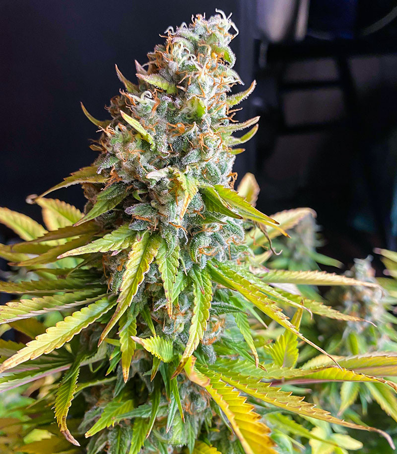 Во время выращивания рекомендуется поддерживать температуру от 18 до 26 градусов. Растения больше предпочитают прохладные условия, нежели жару. Они не станут сильно стрессовать при повышении температуры до 28-30 градусов, но именно прохлада в комбинации с хорошим обдувом поможет реализовать природный потенциал. Если все сделать правильно, то уже спустя 7-8 недель цветения можно будет собирать долгожданный урожай. Производительность в помещении достигает показателя в 450-550 г/м², а в открытом грунте каждый куст принесет владельцу до 500-600 грамм. К харвесту соцветия покрываются толстым слоем смолы, среди которой, словно огненные вспышки, располагаются ярко-оранжевые пестики.