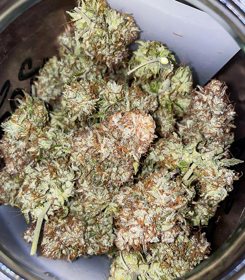 Хотелось бы начать с того, что пахнет он просто великолепно. У него топливно-сладкий аромат, а плотные шишки полностью покрыты сахаром трихом. Само растение небольшое, а выхлоп с него составил 12,9 грамм.