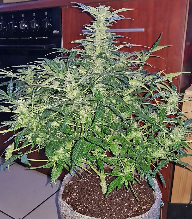 В индоре сорт конопли Easy Ryder Auto с легкостью поместится в стелс-боксе. Оптимальный объем горшка для его выращивания – 7-15 л. Больше брать попросту нет смысла, ведь рост его в среднем составляет 60-75 см. Жизненный цикл растения соответствует паспортным данным, а потому спустя 9-10 недель после прорастания семени можно довольствоваться урожаем в 500 грамм с квадратного метра. При использовании достаточного количества удобрений и ламп мощностью в 250 Вт, один куст принесет от 45 до 60 г шишек. При выращивании нескольких растений лучше сразу ставить лампы на 400-600 Вт, чтобы они смогли раскрыть свой генетический потенциал. Оптимальной влажностью будет значение в 40-60%, а температуру лучше держать на уровне в 24-27 градусов.