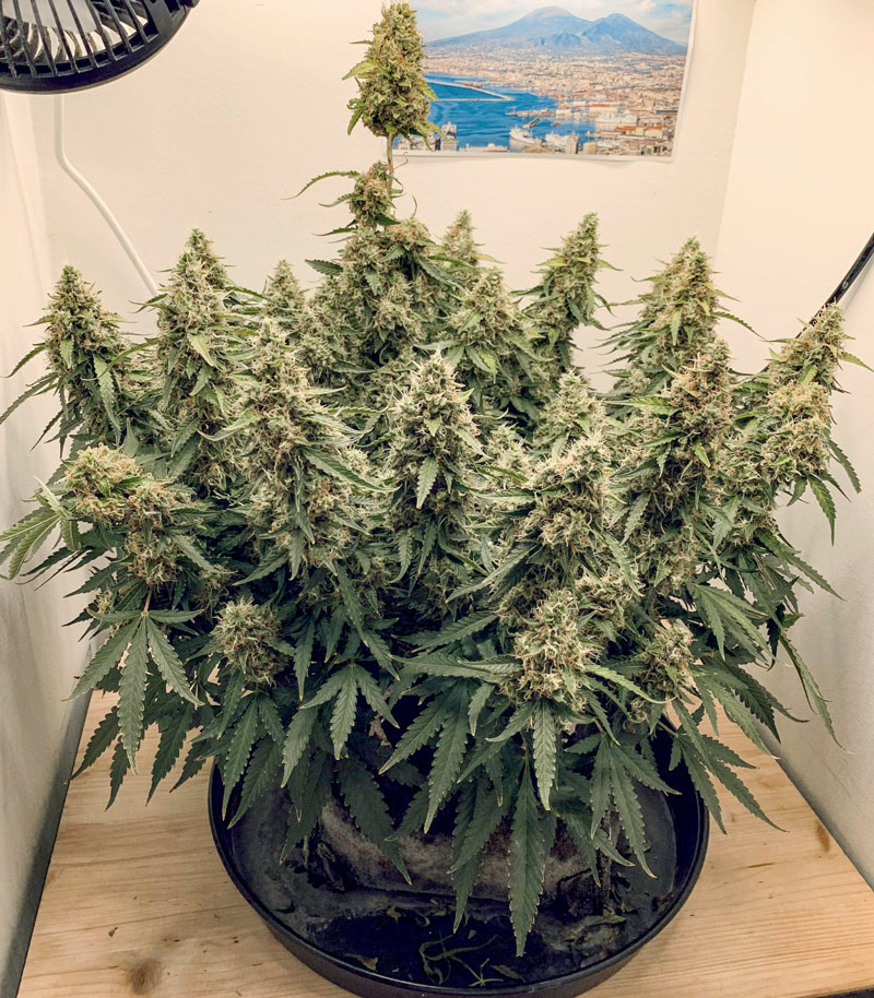 благодаря генам Сативы, раскидистые массивные кусты быстро набирают массу;