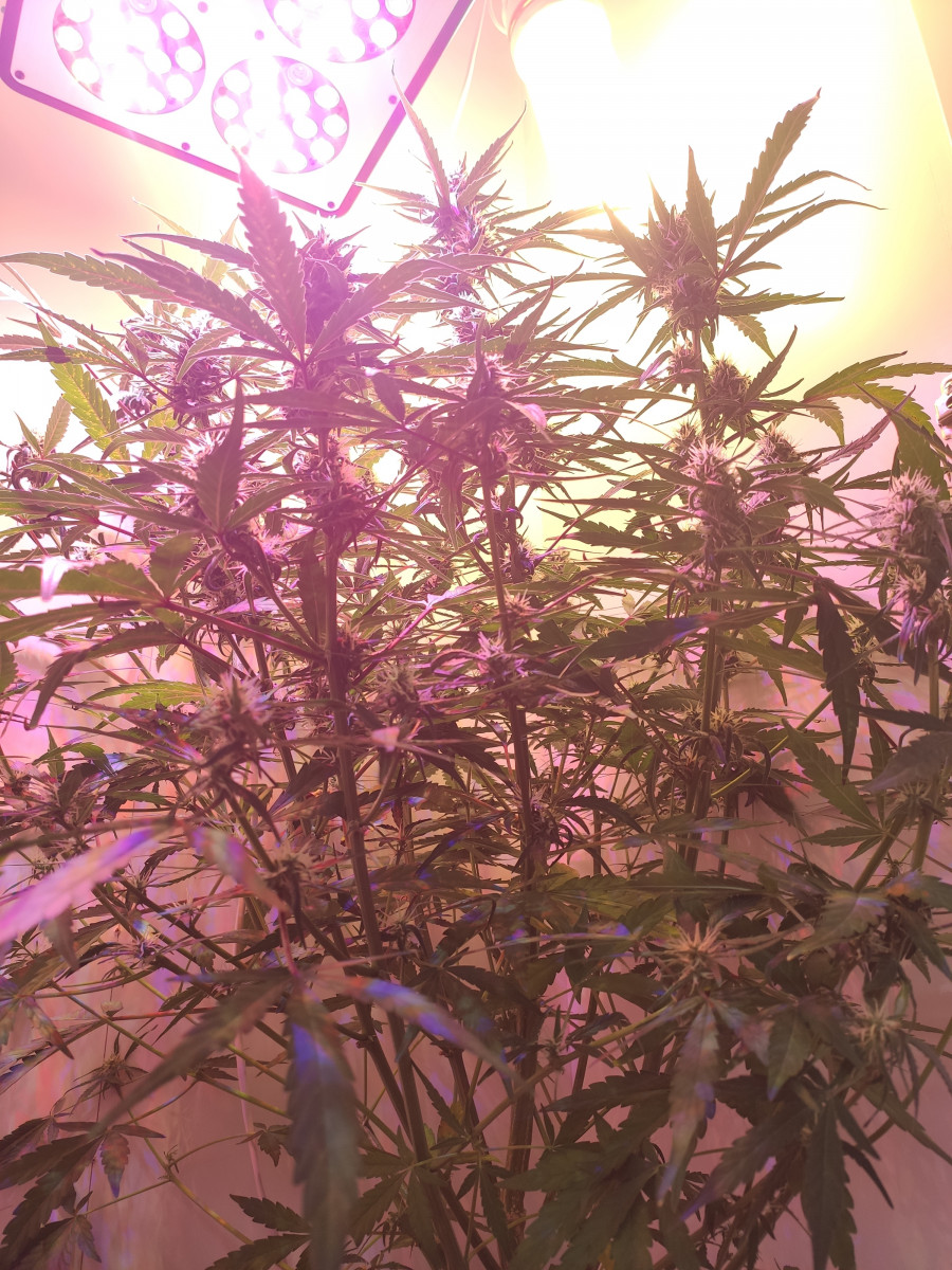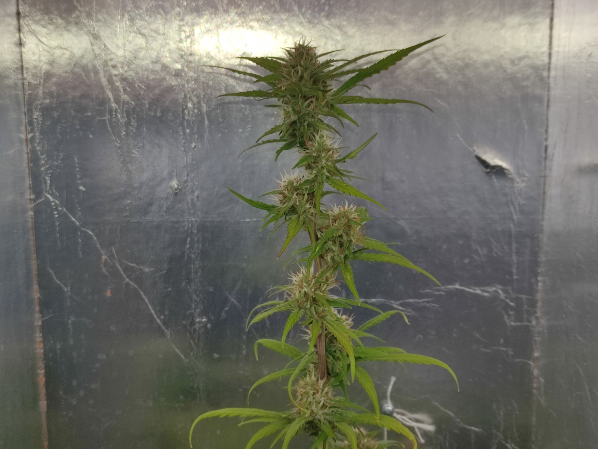Вырастил я короче два куста этого сорта. Оба разные. Две семки я запорол сам наверно, рано посадил. Короче. Прет нормально. Но второй еще не попробовал. Фенотипы разные, один куст не большой, стакан мож полтора вышло. Второй стоит и еще ему стоять я думаю что месяц. Фото второго. На заднем плане фотик, которому этот автик загородил все солнце