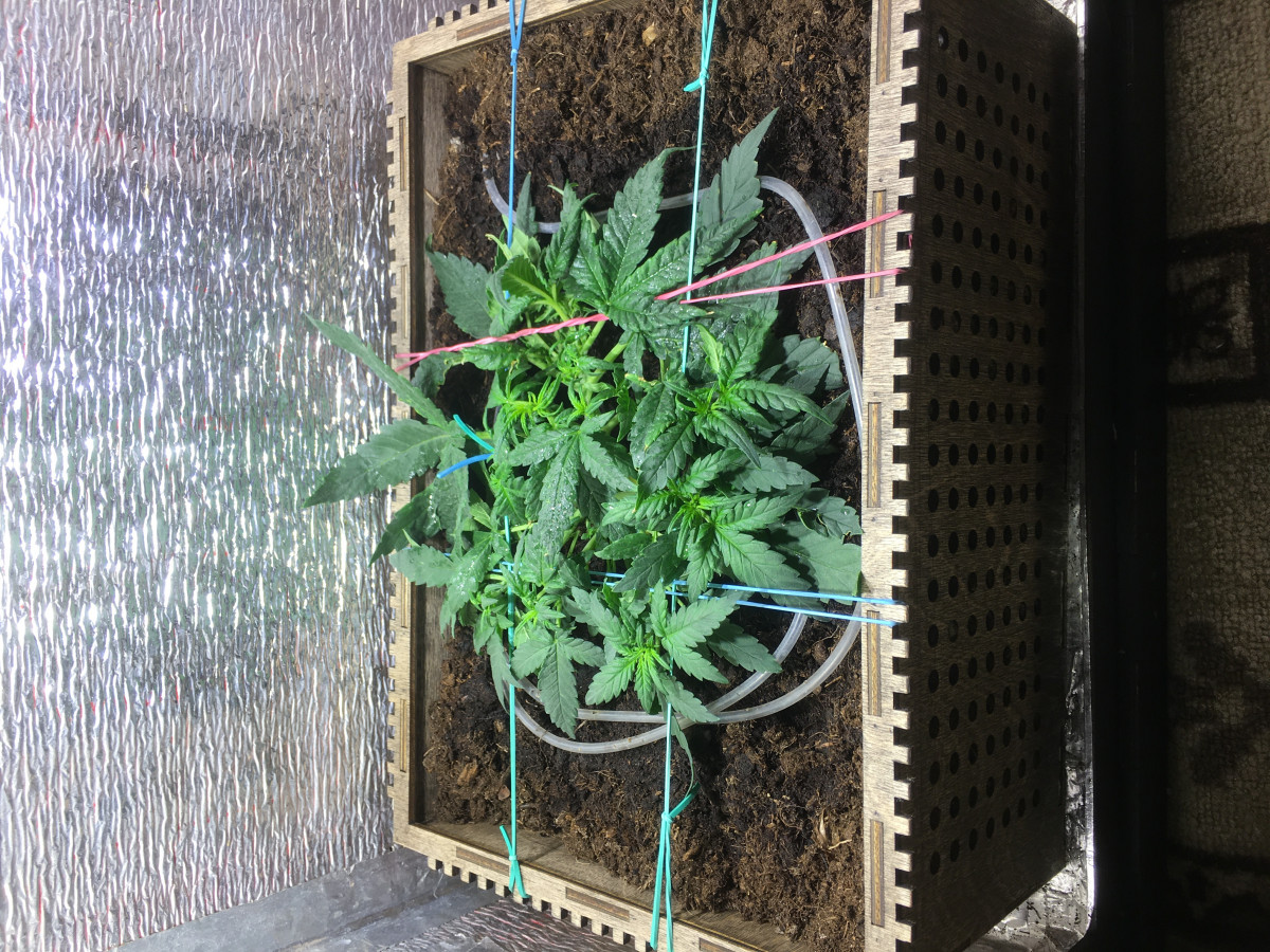 два куста оба разные по виду и по эффекту различались, один более сатива второй более индика получилась, применял технику подгибания(был еще третий но у него я с успехом сломал центральную ветку когда подгибал в итоге он огермился появились яйца, ну был пущен под нож и скурен пока остальные дорастали)) рост небольшой в моем боксе высотой 120 см идеально вписались, примерно по 60-70см были, сейчас там теплится вест кост оджи, пока что полет тоже в порядке)