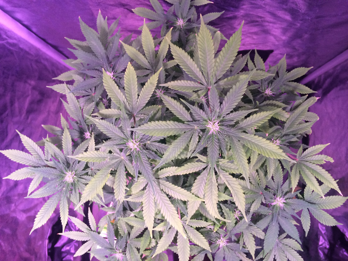 Очень сильно может терпеть все! Две недели цвета на фото. Резал листву каждый день, а он не огермился, разве что тормознул в росте, но надо было вегу ещё подержать пару недель, чтобы оклемался. Гроубег 10л, земля - вторичный биобизз алл микс, свет - днат 150+250, 20w биколор. Кормлю ГХЕ трехкомпонентной обычной. Потенциал прекрасный, дать на куст хотяб 120ватт квантум брида и удобры, например адвансы или плантаторс- будет здоровенная мощная индика со стеблем как у наших чёрных братьев))) снять 3г/ватт будет Вполне реально! Семяныч как всегда радует интересными релизами! Да, бокс 60х60