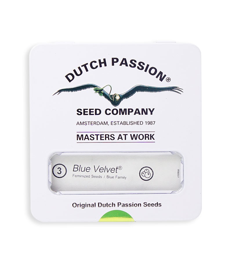 Гибрид появился в 90-х, когда в селекции новых сортов компании помогал создатель Blueberry. В свою очередь для Blue Velvet использовали оригинальные сорта, которые хранились в семенном фонде Dutch Passion.