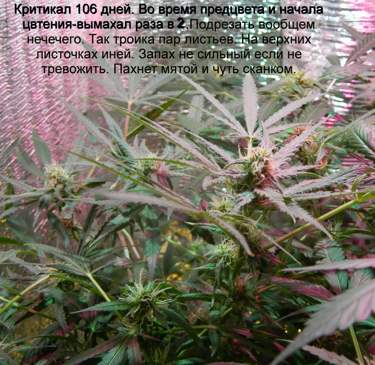 Critical + от DINAFEM прекрасно рос и развивался, пока я не столкнулся с проблемой высокой влажности, и в конце концов получил плесень на шишках. Но проблема не имеет ничего общего с генетикой