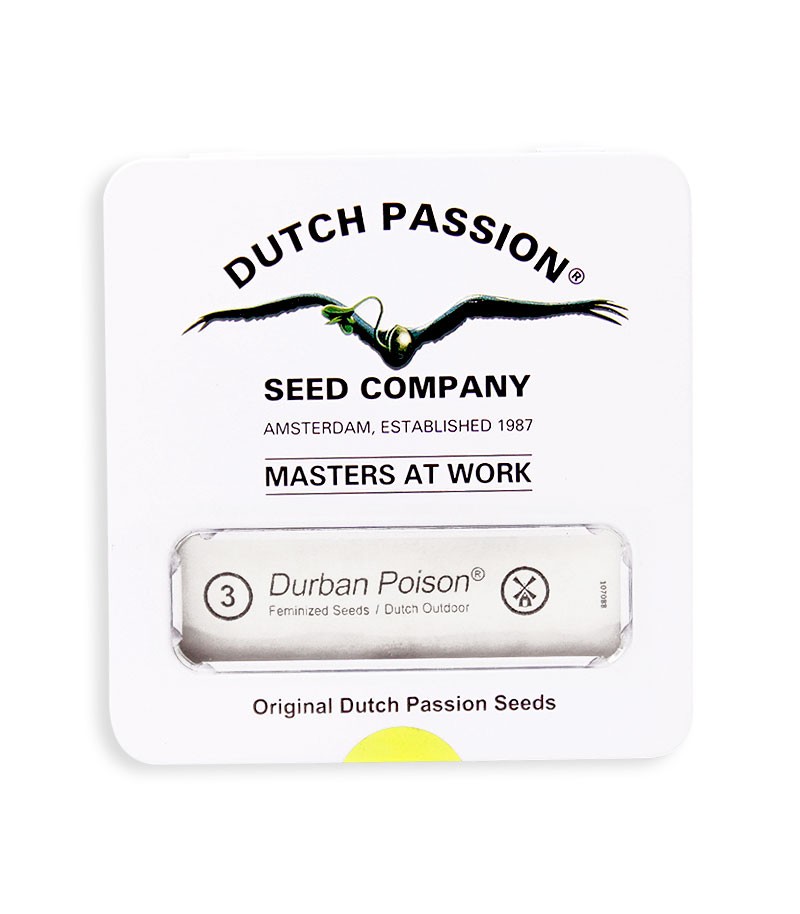Сорт конопли Durban Poison – сатива-доминантный гибрид с бойким характером Индики. Его небольшие плотные шишки, обильно покрытые смолой, вызревают немного дольше других, но это компенсируется фруктово-ягодным вкусом сорта и его бодрящим хай-эффектом, позволяющим сконцентрироваться и прояснить мысли.