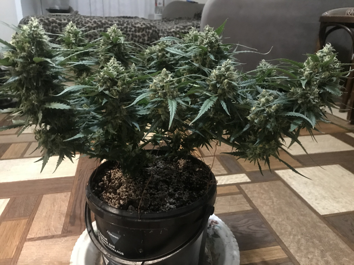 Это был мой первый куст, от каски до харвеста 75 дней. 69гр. сухого. Для первого раза думаю не плохо!