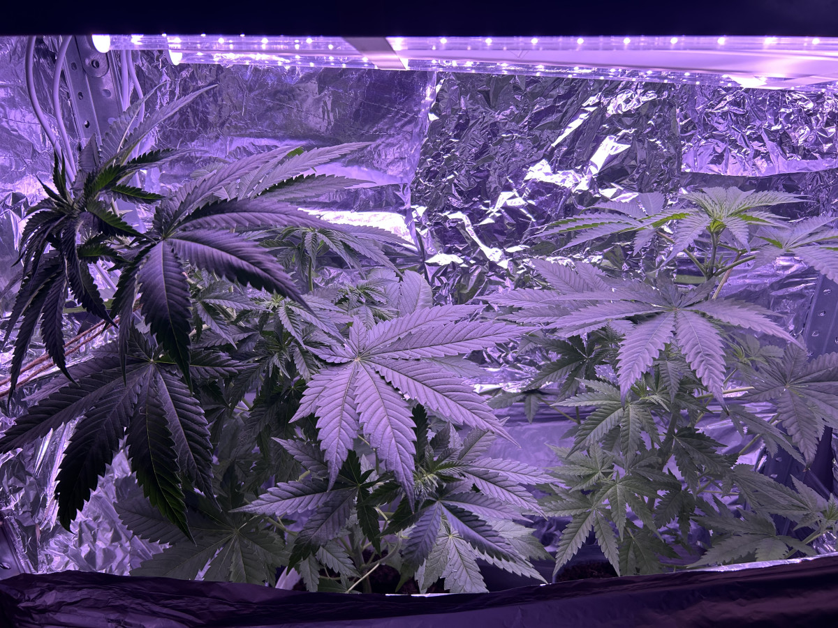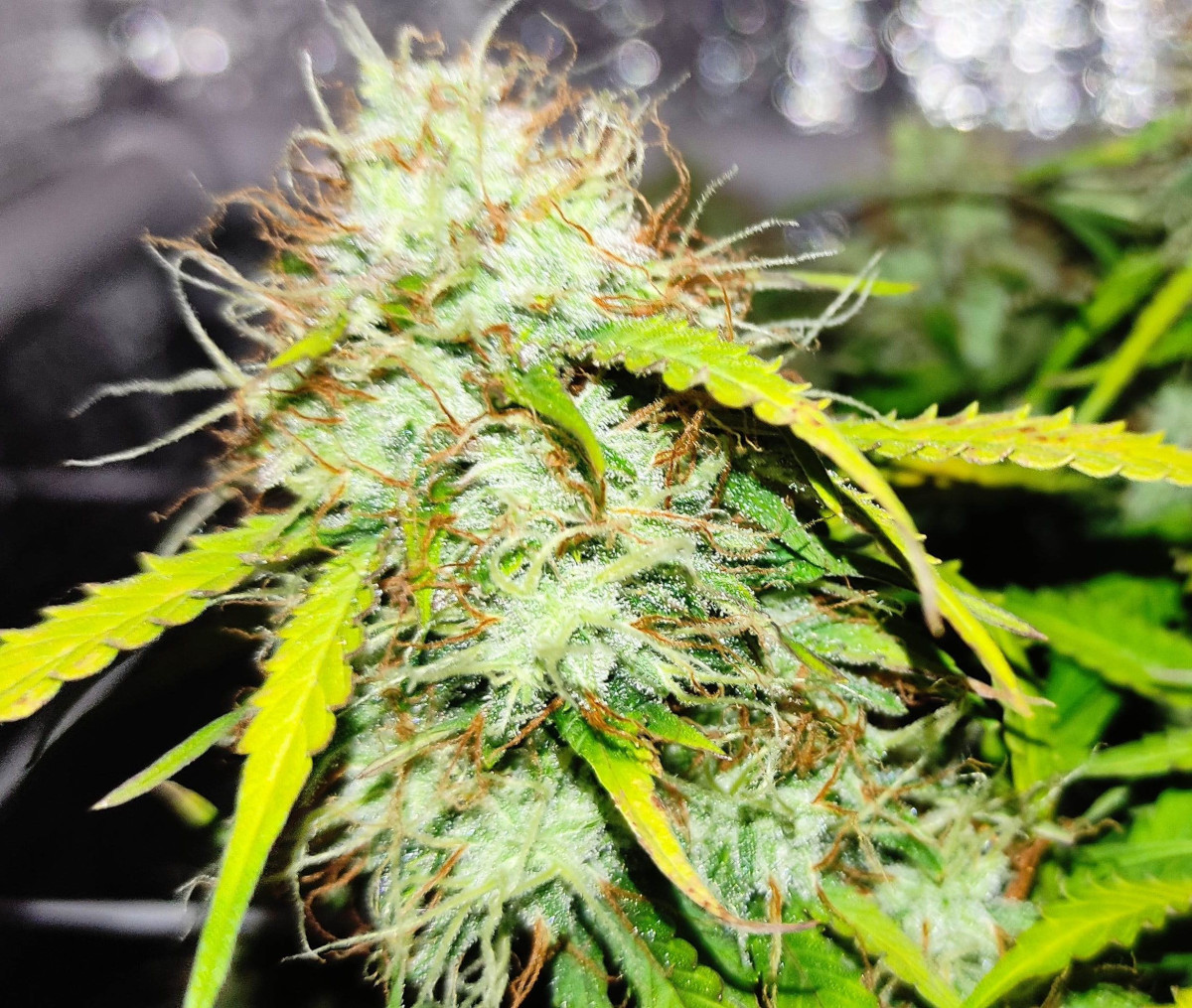 Эксперимент со стелс-гровом Gelato Auto можно считать успешным. С проростом проблем не было, на третий день от высадки росточек сбросил каску без моей помощи. Решил добавить в воду в ультразвуковом увлажнителе кое-какие подкормки, чтоб типо по листу было, ну и влажность чтоб поддерживать. Вроде бы особого эффекта не заметил, но и растение нормально развивалось. Однако примерно в 5 недель начались проблемы с листвой – то пятна коричневые, но загибание кончиков. Решали буквально всем форумом. Что делать, и пришли к выводу, что проблема в РРМ. Пролил под душем, подкормил по листу, вроде полегчало. В 7 недель растишка зацвела, но в 8 недель снова пошли пятна, и снова была промывка.
