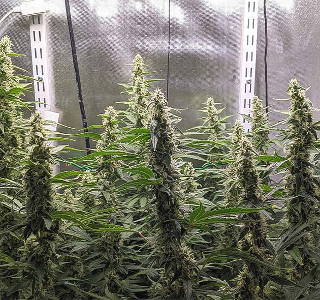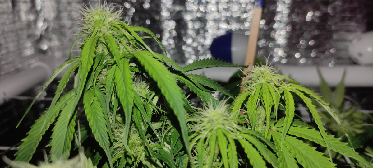 Через неделю начались проблемы с корневой гнилью. Цветение началось в 6 недель только у 2 кустов Джелато, при этом проблемы с листьями все еще проявляли себя, хоть и не так сильно. С началом цветения был просто скачок роста – вдвое мои девочки прибавили в габаритах. К 8 неделе гроутент заполнился запахом фруктов и хэша. Но вдруг к 10 неделе обнаружилась тля, а недоразвитый кустик так и не зацвел, поэтому я с ним решил попрощаться.