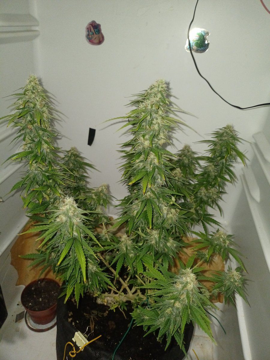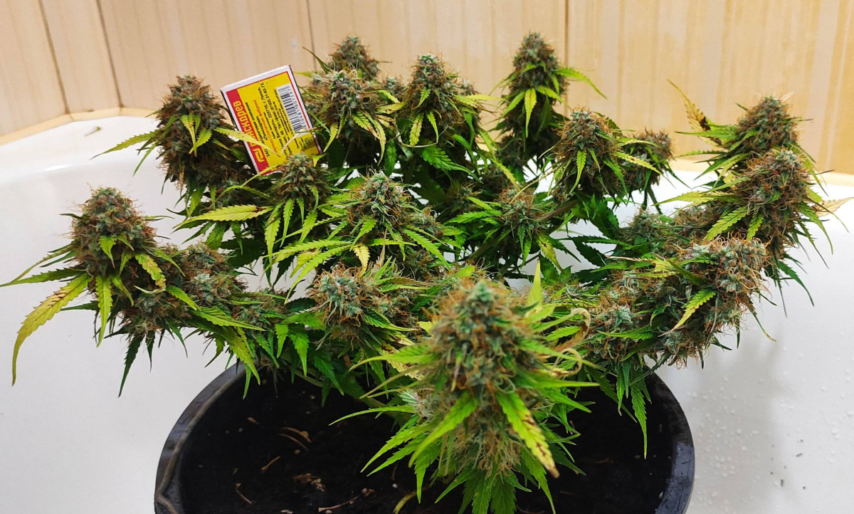 Изначально было 3 семки и 3 кустика. Нормально проросли и развивались, вообще не доставляя каких-то проблем. отлично топпинг пережили и реально тянулись вверх и в стороны. Однако один из них был настолько большим, что не оставлял мета другим растишкам, и они переехали на улицу, а в индоре я сосредоточился на крупном Джелато Авто. С него 240 грамм вышло. С уличных меньше, ведь они так и были в горшках, не пересаживал в открытый грунт.
