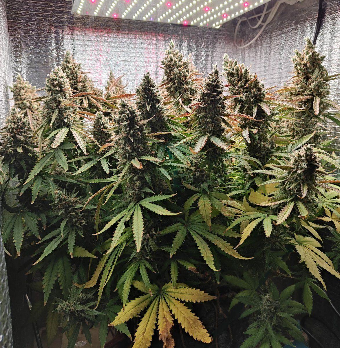 Доброго всем) уже писал отзыв, больше года назад пишу ещё) 4-5 раза уже было выращено) итог в боксе 40х40 при свете 100 ват светодиоды сверху досвет по бокам 3 по 17 ват, кокос от биобиз, всё было ок первые разы(2-3 грова), в какой потом гдет на середине роста он начал затухать умирать, умные люди сказали что переливаю и корни не дышат... вообщем теперь делаю коко 70% 30% белых бабышек перлит вроде, стало всё ок, горшок 10л тканевый) удобры для корней повер рутс после 10 дней как вылез - по чуть чуть от 0.1-1 мл наращивая плагрон , далее а б коко плагрон удобры так же наращивая , а на цвете грин сенсатион плагрон всё так же наращивая) итого в 40х40 стабильно за 65-70 дней от 85-125 сухарей) правдо когда 125 было начала чуть плесень в центре самой большой колы идти, вопрос решился раздвиганием шиш чтоб кислород проходил (колу взять и раздвинуть её чтоб не плотная была), итог в 40х40 100 сухарей стабильно хороших, если не получается чёт неправильно делаете, вытяжка стоит солар палау 160-100 глушилка на неё чтоб не шумела димер работает на 10-20% вытяг, хватает, пробовал разные сорта итог в 40х40, 100 стабильно и неважно 3 месяца растёт или 2, ща бонусную ВВ делал итог 97 сухарей за 85 дней ну и она послабее, а и обдува бойца почти нет ибо шум, стоят 2 кулька от компа 1 на лампе ибо греется, второй бойца обдувает, как то так)