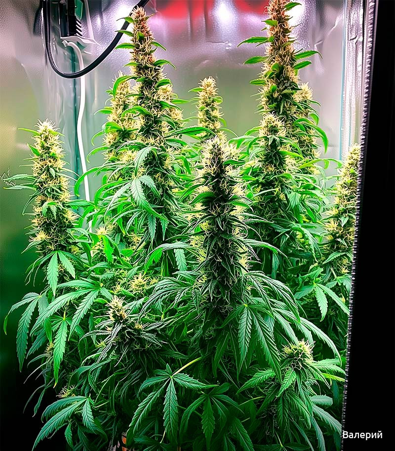Данный сорт выращивал на работе в Арктике. Во время морского перехода по Сев Мор пути. Растил в обычном шкафу, с обычной Китайской фитолампой на 60W, в каюте) На все про все ушло ровно 70 дней. Можно сказать куст поднял на коленке) По размеру получился 70 см в высоту, с одной большой центральной колой и несколькими побегами по бокам... Что могут сказать: Сорт не прихотлив, проблем с ним не было. По качеству бомба, с колпака уносит в рай) Есть с чем сравнить в этом деле не новичок. Сорт реально хороший, скрасил рабочее время) Семянычу респект!