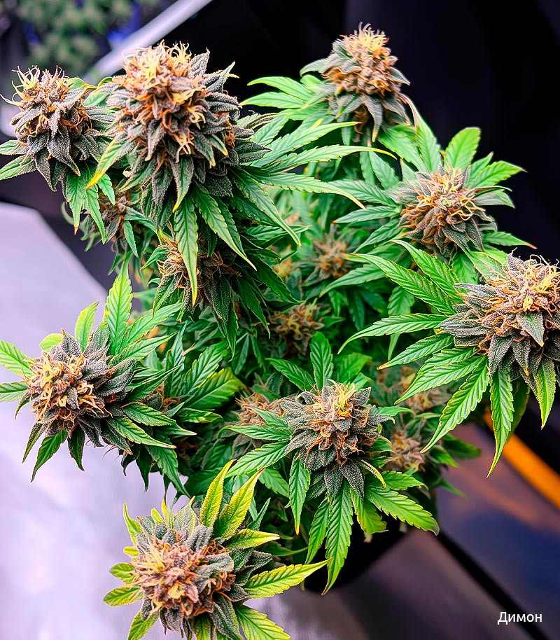 Гров в 25-литровом гроубеге с кокосом с добавлением небольшого количества вермикулита, удобры GHE, свет 19/5 Lightbloom LSM-140. От семки до харвеста 104 дня – не самая расторопная автодевочка, но колоссально продуктивная. Эффект мощный комбинированный, глубокий, не скучный, приятный. Да и сам дым приятный, мягкий, горло не дерет.