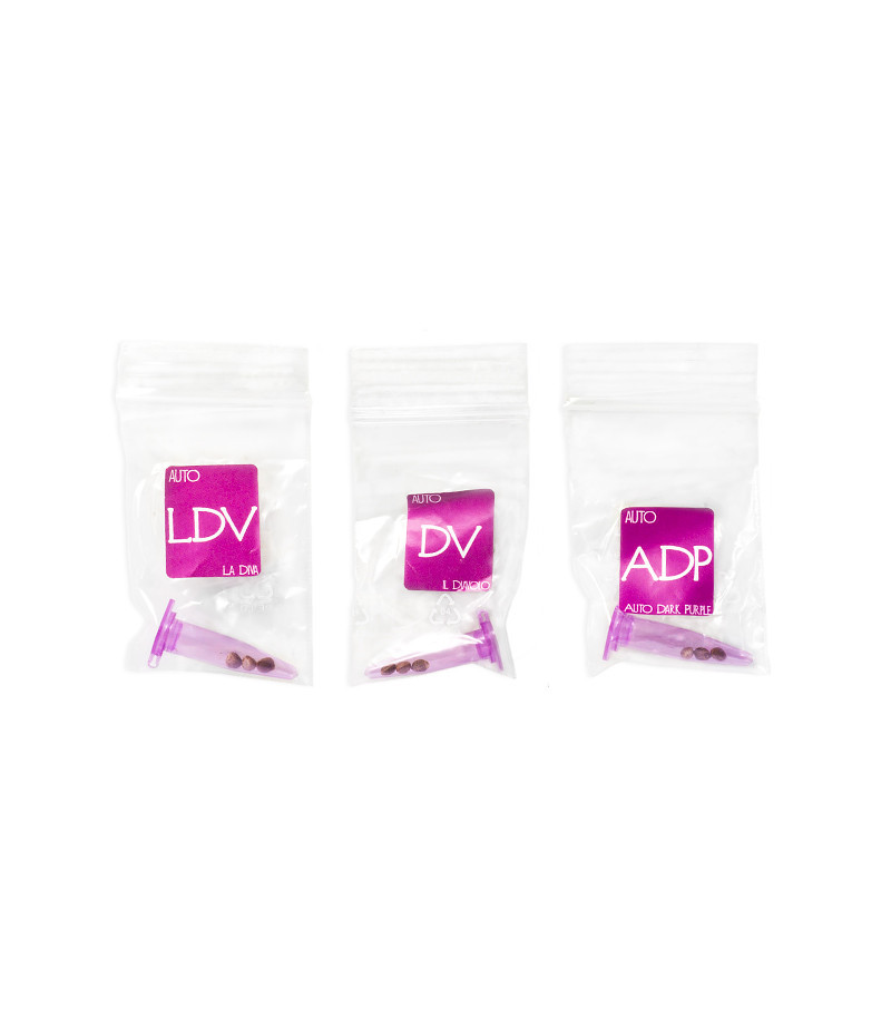 Микс Gourmet Collection – Automatic Strains #1 от Delicious Seeds – это прекрасная возможность познакомиться с отличными автоцветами от надёжного испанского сидбанка. В наборе 9 семян трех автоцветущих сортов: La Diva, Il Diavolo и Auto Dark Purple. Каждый из них демонстрирует быструю динамику развития и приносит урожай всего через 60 дней с момента прорастания семян. Сорта отличаются высокой адаптивностью и стрессоустойчивостью, поэтому это трио станет отличным выбором для гроверов любого уровня мастерства.