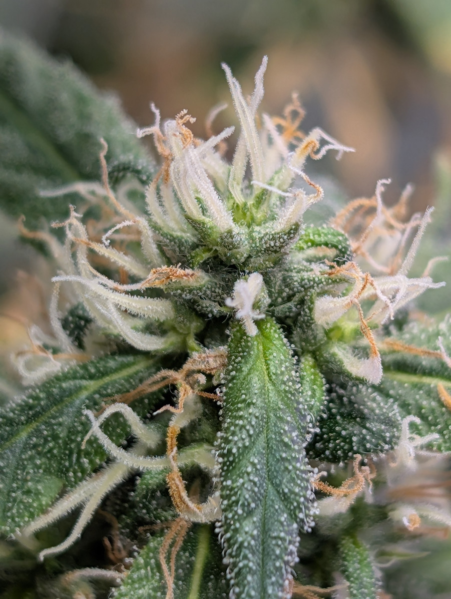 Поднимаю уже второй куст. При моих на тот момент очень скромных ресурсах, под не самым лучшим самодельным светом, растение держалось молодцом и выдавало максимум, что могло. Долго переходило на цвет, одуваны не показывались около двух недель после перевода на 12/12. Сейчас же в гораздо более подходящих условиях развивается буквально на глазах, активно дает новые узлы и колы. Очень любит свет, и за хорошее с ней обращение отплачивает сполна. Дефицитов как будто вообще никаких не было, только ближе к сбору урожая концы желтеть начали чутка.