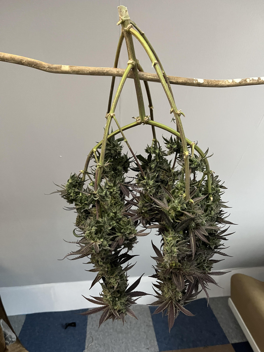 До момента сбора урожая растишка провела неделю без полива. Срезанный под корень куст сразу весил 320 грамм. Затем были срезаны мелкие веточки, а шишки подвергнуты влажной обрезке. Вес сырых шишек составляет около 192 г (включая стебли). В сухом же остатке вышло около 40 г.